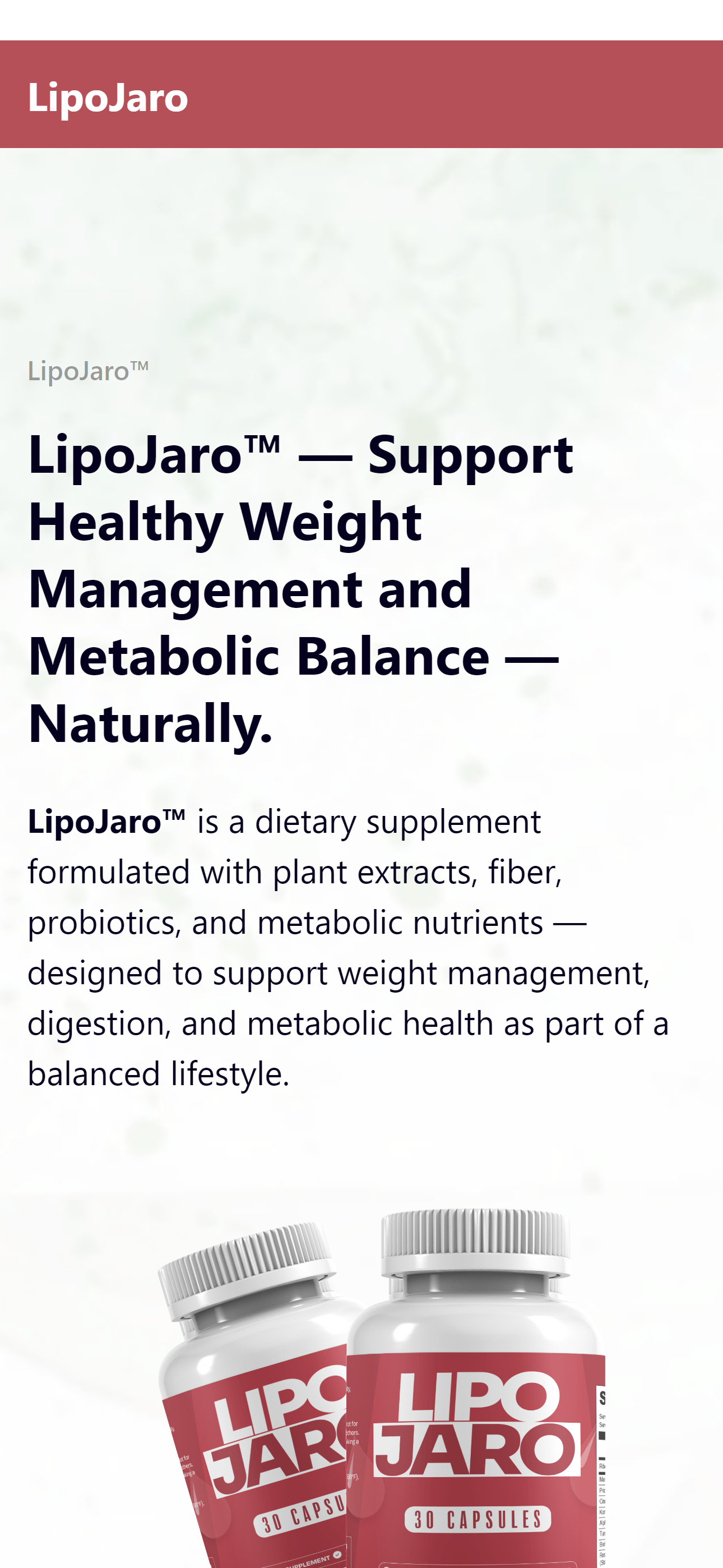 LipoJaro is a natural dietary supplement designed to support weight management, digestion, and metabolic balance. Its formula combines plant-based ingredients, fibers, and metabolic nutrients to help your body function more efficiently as part of a balanced lifestyle.